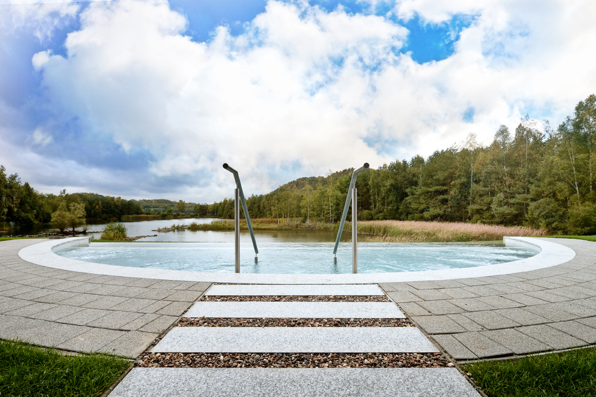 Volgens het persbericht: “als eerste wellness in de Benelux wordt er gebruik gemaakt van Huwa-San water voor het desinfecteren van de zwembaden. De zwembaden zijn 100% chloorvrij, geurloos en zacht voor de huid, zonder nadelige effecten op mens en natuur. Het binnenzwembad is omringd met een 8 meter hoge grote dodecaëder (symbool van het element ether, het vijfde en meest volmaakte element volgens Plato na water, vuur, aarde en water). In het midden boven op een centrale zuil schittert een prachtige kwartskristal. Onder water hoort u dolfijn- en walvisgeluiden, terwijl u kunt genieten van het panoramisch uitzicht, of boven u kunt u door het glazen plafond, de kristal op het puntdak, lucht, wolken of sterren bewonderen. Soms wordt deze ervaring opgeluisterd door een pianist”.