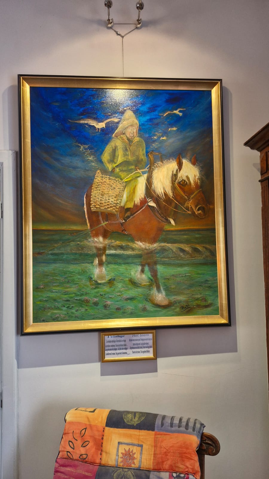 Wie op bezoek komt, treedt binnen in een intieme wereld waar niets wordt opgelegd, maar waar alles zichzelf toont. Een van de eerste werken die je begroet is een tafereel van een paardenvisser uit Oostduinkerke, geschilderd met een onmiskenbare zachtheid en respect voor traditie. Het werk getuigt niet enkel van technische kunde, maar ook van een diepe verbondenheid met erfgoed. Niet toevallig: in 2011 stonden Roni nog met een tentoonstelling in het stadhuis van Nieuwpoort, waarmee een symbolische brug werd geslagen tussen de kust en de Ardennen. Die band leeft voort, onder meer in de werken waarin ook Oostende en Nieuwpoort figureren.